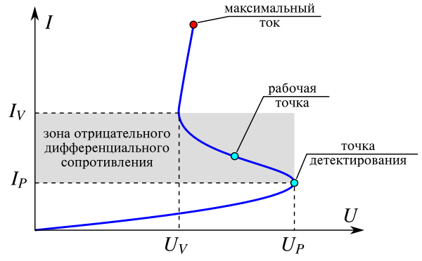 Эффект усиления и генерации обусловлен возникновением отрицательного дифференциального сопротивления на некоторых участках вольт-амперной характеристики кристаллического детектора.