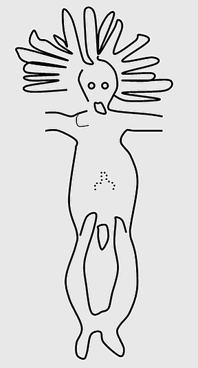 Общий размер камня уменьшился в связи с обломавшейся верхушкой, и сегодня камень возвышается над землёй на 1,5 метра, уходя в землю на половину. На нём высечено изображение распростёртой женщины (или богини) с символом солнца вокруг головы[1].