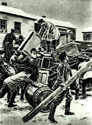 | Утро 9 января у Нарвских ворот. Гравюра | |