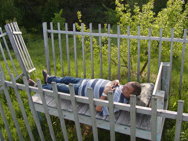Архитектор Александр Бродский позаботился о том, чтобы сладкий покой над Угрой обрели все желающие. Его объект представляет собой деревянную кроватку с деревянной же подушкой, обнесённую трогательной дощатой оградой, покрашенной серебрянкой[3].