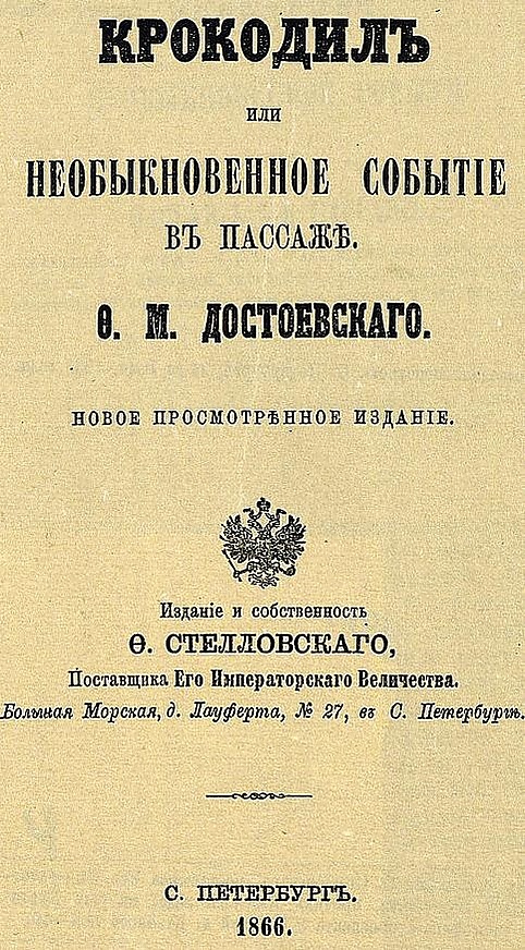 В воспоминаниях Достоевский описывал, что в 1864 году «в Пассаже какой-то немец показывал за деньги крокодила», что подтолкнуло его написать сатирически-фантастическую повесть в подражание гоголевскому «Носу». Первоначально рассказ назывался: «О муже, съеденном крокодилом». Позже при публикации рассказа в журнале, он получил название «Крокодил. Необыкновенное событие, или Пассаж в Пассаже».[1]