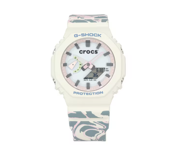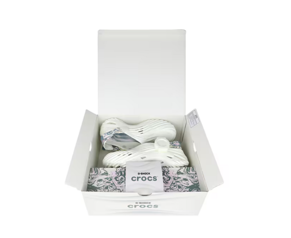 Кроксы со встроенными часами — коллаборация Crocs и Casio. Компании совместно выпустили сабо со встроенными часами G-SHOCK. Продажа стартовали 27 мая 2025 года[1].