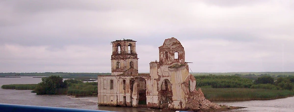 Под воздействием воды, волн от проходящих судов, ледостава и ледохода стены церкви стали постепенно разрушаться. Если в начале 1970-х во время съёмок фильма «Калина красная» целостность здания ещё сохранялась, то к 1980-м годам была разрушена кровля колокольни и трапезной, начали рушиться стены четверика, к 2000-му году обрушилась часть западной стены трапезной, от восточной части храма осталась только западная стена, примыкающая к трапезной, и отдельно стоящий юго-восточный угол[15]. В таком виде церковь простояла довольно долго.