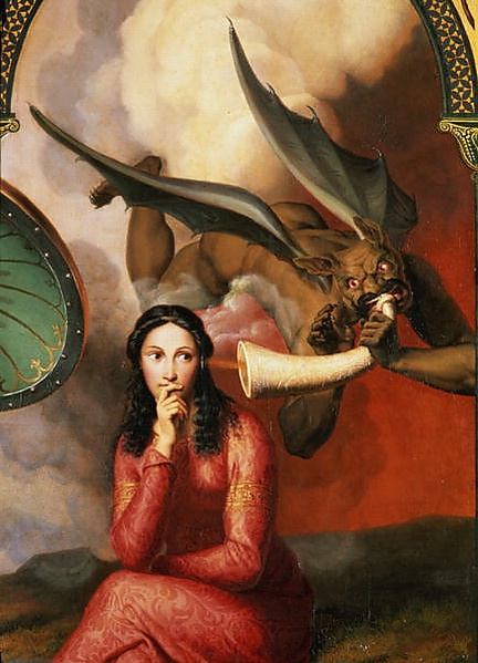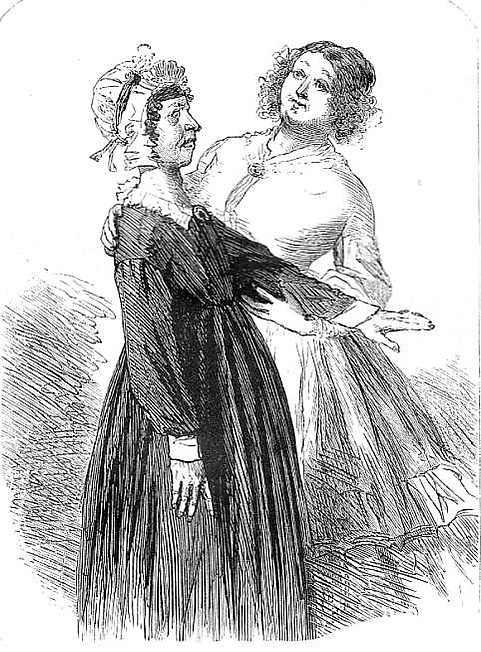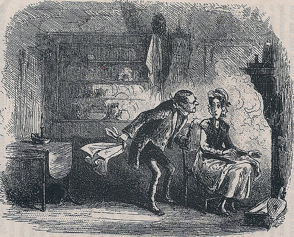 В другом виде представлена Британия в XXIII главе книги второй. Артур приезжает навестить свою мать и сталкивается с Эффери, «которая, стоя с длинной вилкой в руке, напоминала собой аллегорическую фигуру, только в отличие от большинства подобных фигур, смысл аллегории был здесь совершенно понятен» (англ. who, with the kitchen toasting-fork in her hand, looked like a sort of allegorical personage, except that she had a considerable advantage over the general run of such personages, in point of significant emblematical purpose[133]). По мнению Питера Престона, это изображение, где доблестный трезубец превращается в вилку для тостов, объясняет читателю, что Эффери, одна из наименее сообразительных героинь романа, однако, догадывается о тайне дома миссис Кленнем, в то время как никто не обращает на неё ни малейшего внимания. Этот комический образ Британии служит Британии псевдогероической — жестокой миссис Кленнем, которая на иллюстрациях Физа выглядит невероятно чопорной в инвалидном кресле[134]. Таким образом, весь дом миссис Кленнем олицетворяет собой Великобританию, которая, как и он, готова обрушиться в любой момент[135].