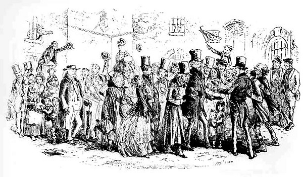 Схематичная конструкция «Тяжёлых временах» явилась косвенным показателем нового, более пессимистического отношения писателя к миру. Поэтому естественно что, возвратившись в Крошке Доррит к старым темам и мотивам, он уже не сумел вдохнуть в них былую жизнь, не смог обрести былого оптимистического подхода к действительности [159]. Городские ландшафты «Крошки Доррит» полны уныния и разочарованности. В них почти нет светлых пятен. Здесь нет уже наивной функции «роскошной жизни», которая имеется, в «Николасе Никльби», где богачи изображаются людьми, которые могут весело проводить время. Здесь всё одинаково безрадостно и безнадёжно. И если тюрьма Маршалси — отвратительное страшное место без воздуха и без света, — то не менее ужасен и отвратителен аристократический дом мистера Тита Полипа — дом, стоящий в глухом переулке, заваленном навозными кучами окружённый конюшнями и сараями. Фикция роскошной жизни, к которой могли стремиться бедняки, пропала из романов Диккенса. Жизни банкира и фабриканта в «Тяжёлых временах» — лишь обратная сторона жизни рабочих Коктауна. В «Крошке Доррит» происходит нечто подобное. Романтика рождественских рассказов, с их поэтическими жареными индюками, освещёнными магазинами, пылающими каминами, вся рождественская вакханалия — всё это ушло в далёкое прошлое. От условного мира домашней романтики остались только печальные воспоминания[160].