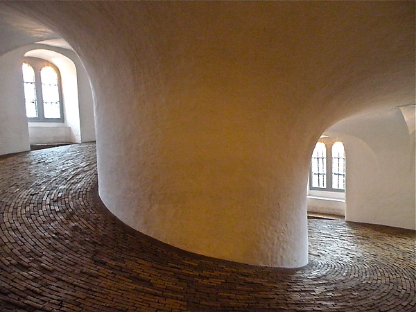 Верхний ярус башни, который поднимается на 36 метров над уровнем мостовой, занимает планетарий. Ступеней внутри нет. Наверх ведёт пологий винтовой подъём протяжённостью в 210 метров, семь раз по спирали опоясывающий башню. Предложение соорудить подъём в таком виде приписывается Кристиану IV[3]. Благодаря такому устройству в обсерваторию могли подниматься повозки и всадники на лошадях. По легенде, в 1716 году такой подъём совершил Пётр Первый, за которым последовала его супруга в карете, запряжённой шестёркой лошадей[4]. В 1902 г. на вершину Круглой башни впервые поднялся автомобиль[5].