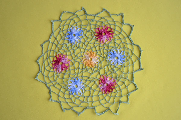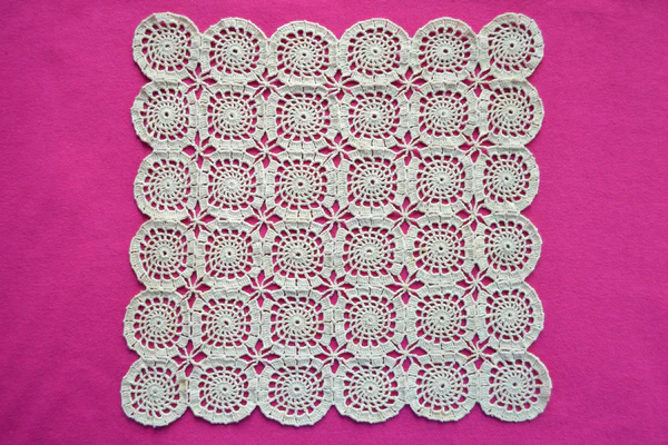 Салфетки, как и другие предметы домашнего обихода, могут быть сделаны путем вязания крючком рядов по сетке с использованием техники, называемой филейным вязанием, аналогично точкам в декартовой системе координат .