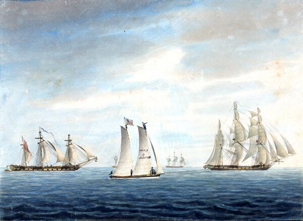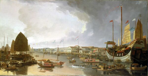 Испытав тяжёлые штормы, 20 ноября «Надежда» встала на рейде Макао, но, вопреки ожиданиям, «Нева» ещё не подошла. Хотя Российско-Американская компания воспретила капитану вмешиваться в торговые сделки, капитан, будучи знаком с местным рынком и европейскими контрагентами, пренебрёг ограничениями, и Ф. Шемелин вынужден был с этим согласиться[82]. Крузенштерн хотел работать с директором фактории британской Ост-Индской компании в Кантоне Дж. Драммондом (Друммондом), с которым был знаком ещё с 1798 года. В соответствии с инструкциями графа Румянцева, капитан мог получить от него обстоятельную информацию о Цинской империи. К тому времени открылся торговый сезон и британский персонал перебрался в Гуанчжоу, а личный дом директора и помещения компании предоставили Крузенштерну и офицерам, желавшим развеяться на берегу[83]. Крузенштерн пришёл к выводу, что рынок Макао сделался второстепенным, и также решил двигаться в Гуанчжоу. Лисянский на «Неве» прибыл с Аляски с грузом мехов 3 декабря, и русские шлюпы передислоцировались к острову Вампу (Хуанпу) в устье реки Чжуцзян. Крузенштерн, в соответствии с инструкциями, рассчитывал, что посольство Головкина уже будет в Пекине и все договорённости с цинскими властями будут исполнены. В реальности посольство даже не пересекло китайской границы, и русские шлюпы вызвали переполох среди гуандунского начальства и купечества. Тем не менее, управляющий морской таможней (русские называли его гоппо) Янь Фэн разрешил судам войти в порт Кантона, очевидно, намереваясь присвоить пошлину. Губернатор У Сюнгуан, напротив, медлил с разрешением, а без этого купцы не могли заключать сделок. При этом наступал сезон тайфунов, и Крузенштерн с Лисянским рисковали потерять ещё год. В этой ситуации на помощь пришли британцы, особенно фирма «Биль и Моньяк» (в транскрипции Крузенштерна). Офицеры поселились в доме Биля[84], причём приказчик Российско-американской компании Шемелин возмущался запрошенной суммой комиссионных — пять процентов вместо общепринятых двух. Купцу с огромным трудом удалось уговорить младшего члена сообщества Гунхан Ли Яньюя (русские называли его Луква) «отблагодарить» Янь Фэна. Когда дело сдвинулось с мёртвой точки, Шемелин не пожелал заниматься бартерным обменом, а потребовал наличное серебро (возможно, исполняя требования своей компании)[85]. В январе возник конфликт и между Крузенштерном и Лисянским. Насколько можно судить, Юрий Фёдорович стремился участвовать в сделке и получить капитанскую комиссию, ссылаясь на свой статус и Морской устав[86]. Много подробностей об этих событиях можно узнать из писем Крузенштерна жене, которые он отправил оказией через Бостон и Филадельфию, откуда они через доверенных лиц в Лондоне и Копенгагене были доставлены в Ревель[87].