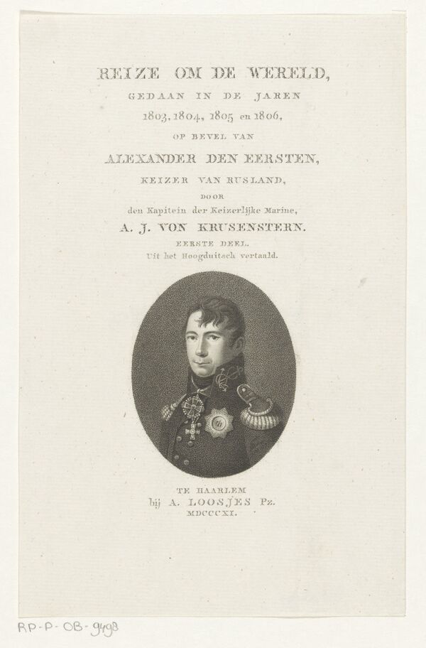 - Путешествие вокруг света в 1803, 4, 5 и 1806 годах : По повелению его императорского величества Александра Первого, на кораблях «Надежде» и «Неве», под начальством флота капитан-лейтенанта, ныне капитана второго ранга, Крузенштерна, Государственного Адмиралтейского департамента и Императорской Академии наук члена. — СПб. : Морская типография, 1809—1812. — XXV, 379; 471; 453 с.