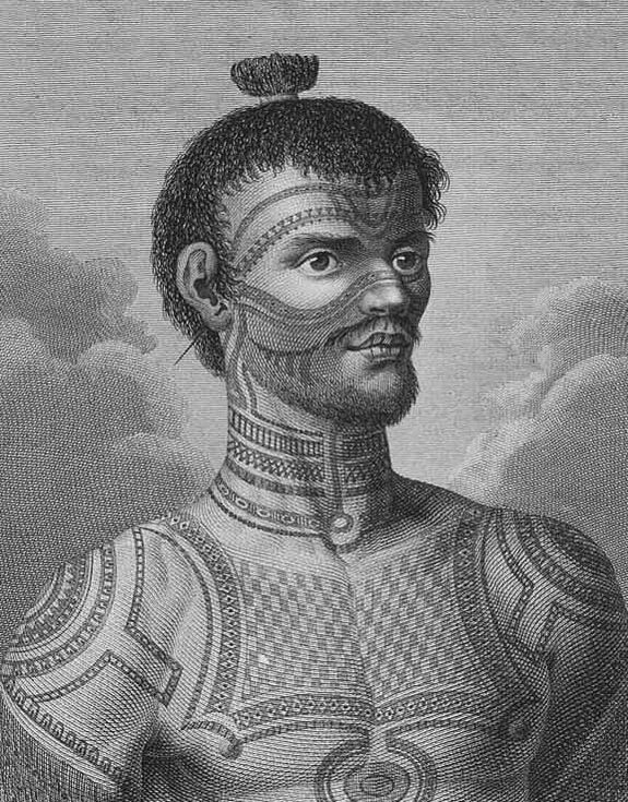 Из прочих обычаев всех заинтересовала татуировка: маркизцы накалывали всю поверхность тела, включая голову, в этом с ними могли соперничать только маори. Экспедиционеров поражало, что татуировщики могли скопировать надпись на любом языке. Сам Крузенштерн сделал на руке имя жены, «которую он совершенно обожает» (по словам Ратманова). Граф Толстой именно на Маркизах положил начало коллекции татуировок на собственном теле[61][62]. На Нуку-Хиве произошла резкая вспышка конфликта между Крузенштерном и Резановым, поводом для которой послужили разногласия по мене съестных припасов и редкостей для Кунсткамеры. 14 мая произошло публичное выяснение отношений между камергером и капитаном, в котором приняли участие представитель РАК Шемелин и Лисянский. По описанию всех сторон, посол назвал действия капитана «ребяческими». Крузенштерну был сделан выговор, на что он отвечал, что Резанову не подчиняется. Офицеры обоих шлюпов потребовали у Резанова объяснений и публичной демонстрации инструкций, причём посол не смог назвать имя автора инструкции (графа Румянцева), а Лисянский, по свидетельству самого Резанова, открыто заявил, что государь Александр «подписать-то знаем, что он всё подпишет»[63]. Ратманов в дневнике утверждал, что после заявления Резанова, что «он всё, а Крузенштерн — ничто», посол не смог подтвердить свои полномочия документально. По мнению историка флота Н. Л. Кладо, Резанов имел на руках лишь Высочайший рескрипт, в котором ничего не было сказано о порядке подчинения. В противном случае Крузенштерн не мог столь уверенно себя вести против старшего по возрасту и званию (камергер в Табели о рангах относился к тому же классу, что и контр-адмирал)[64]. В результате Резанов, чтобы не обострять отношений, до прибытия на Камчатку добровольно не выходил из своей половины капитанской каюты[65].