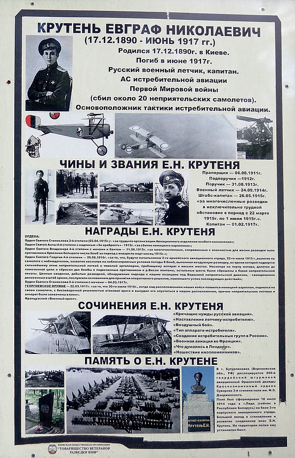 - Фото: Шт.-капит. Е.Н. Крутень, сбивший два аэроплана, за что награждён орденом св. Георгия 4 ст.// Иллюстрированное приложение к газете "Новое время". - №14539. - 27 августа (9 сентября) 1916г. - С.8 (292).