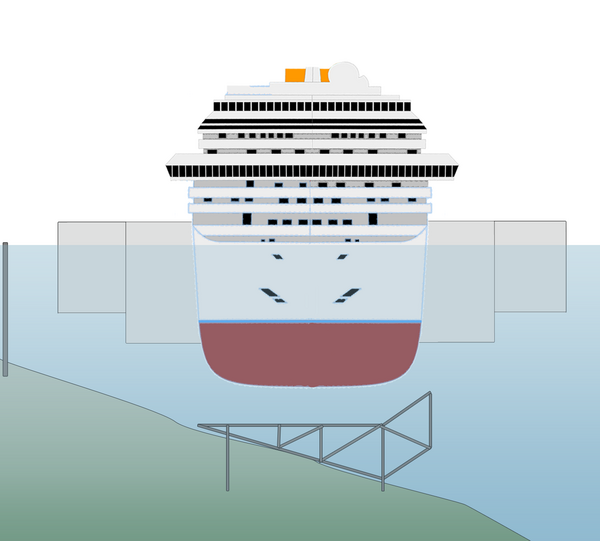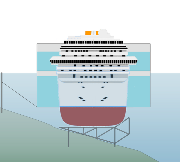 Ввиду сложного рельефа дна, прежде чем ставить корабль на киль, необходимо было подготовить для него ровную площадку. Для этого на верфях области Венеция были построены 5 стальных платформ массой 1000 тонн каждая. Их морем доставили к острову Джильо и установили рядом с судном на глубине 30 м на сооружённый свайный фундамент. Все платформы вместе образовали площадку, равную футбольному полю. В Ливорно тем временем велась сборка 30 резервуаров для воздуха — понтонов, высотой более 30 м и весом 20 тонн. Громадные секции приваривались к левому борту на расстоянии 48 мм друг от друга. Получившаяся конструкция вмещала 66000 м³ воздуха и могла придать повреждённому судну положительную плавучесть, но до постановки на ровный киль они были частично заполнены водой[121].