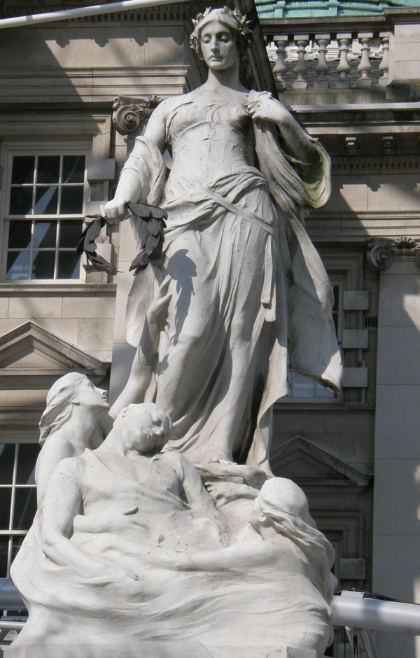 В 1916 году ещё один памятник членам машинной команды «Титаника» был установлен в Ливерпуле. В 1920 году в Белфасте на средства горожан, родственников погибших, сотрудников верфи «Харленд энд Вулф» и компании «Уайт Стар Лайн» был возведён памятник всем жертвам крушения «Титаника». На вершине пьедестала установлена каменная скульптура женщины, олицетворяющей смерть или судьбу, она держит лавровый венок над головой тонущего среди русалок моряка[321].