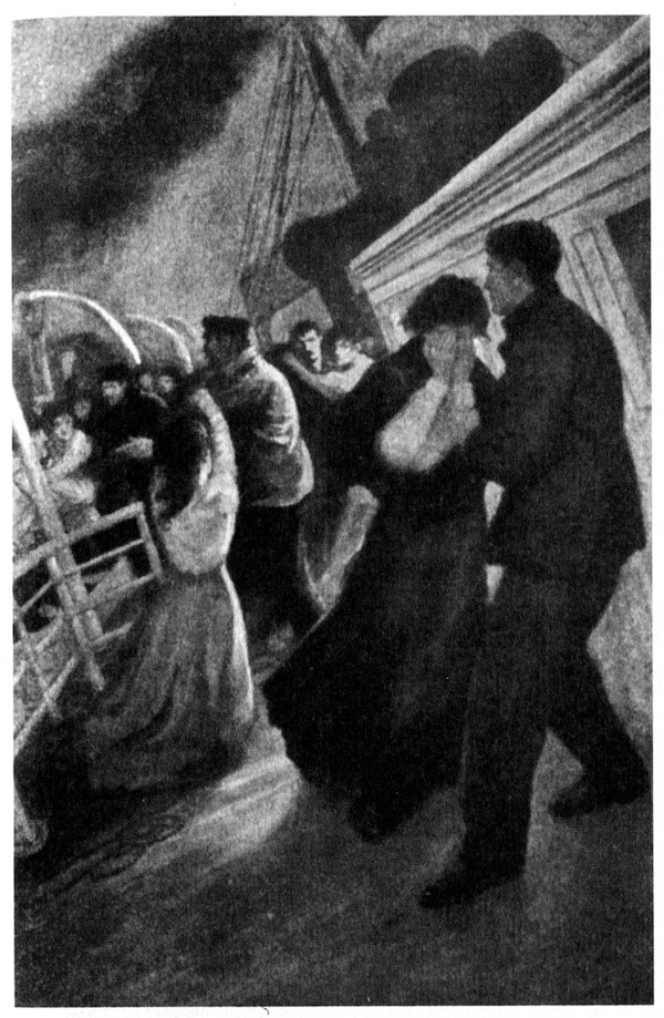 В отличие от пассажиров верхних палуб, пассажиры нижних палуб (в основном 3 класс и члены экипажа) были встревожены гораздо больше. На кухне, на палубе «D», где готовилась еда для обеденных салонов первого и второго классов, силы толчка было достаточно, чтобы с плиты на пол упал противень со свежей выпечкой[102]. Сильнее всех удар ощутили кочегары, чьи каюты располагались прямо над носовыми отсеками. Один из них вспоминал, что все они буквально выпали из коек. Старший кочегар приказал надевать всем спасательные жилеты и подниматься к шлюпкам, но наверху старпом Генри Уайлд отправил их обратно[103]. В носовую часть палубы Е, где находились каюты экипажа, спустился судовой плотник и сказал: «Будь я на вашем месте, я бы убрался отсюда. Судно протекает, зал для игры в мяч уже затопило». Затем появился боцман и объявил: