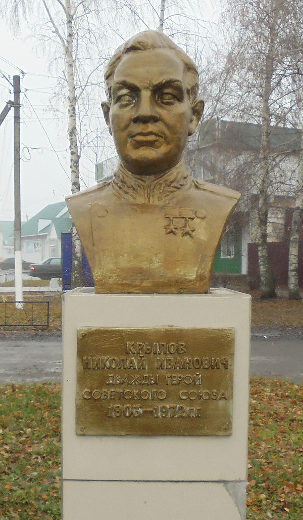 - Как дважды Герою, маршалу Крылову в 1951 году был установлен бюст на малой родине — в селе Вишнёвое Тамалинского района Пензенской области.