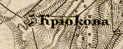 Согласно карте из «Исторического атласа Санкт-Петербургской Губернии» 1863 года деревня называлась Крюкова[10].