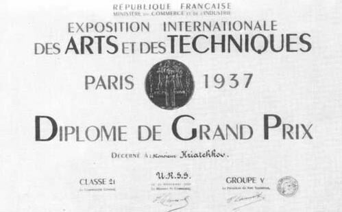 В 1937 году проекты Крячкова (Дома Советов в Иркутске и Красноярске, Стоквартирный дом в Новосибирске) были представлены на Всемирной выставке в Париже и удостоены Гран-при и Золотой медали[12].
