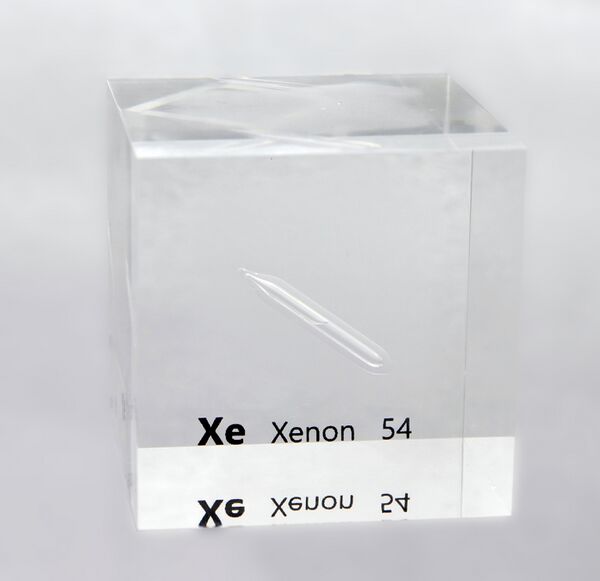 Простое вещество ксенон — это тяжёлый благородный одноатомный газ без цвета, вкуса и запаха.