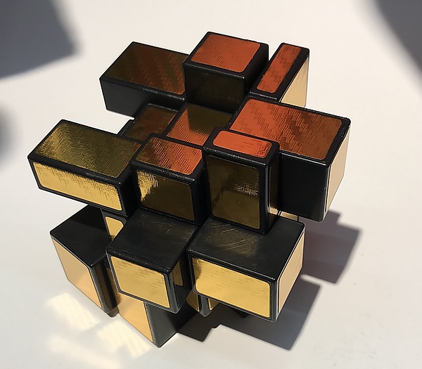 Одним из примеров модификации кубика Рубика является Зеркальный кубик Рубика, с размером массива 3×3×3, как и в оригинальной версии головоломки, однако выполненный со всеми гранями одного цвета (часто блестящими, зеркальными — откуда и название), но на каждой из которых вместо квадратов — прямоугольники разных размеров. Зеркальный кубик был изобретён в 2006 году японцем Хидетоши Такедзи[23][24].