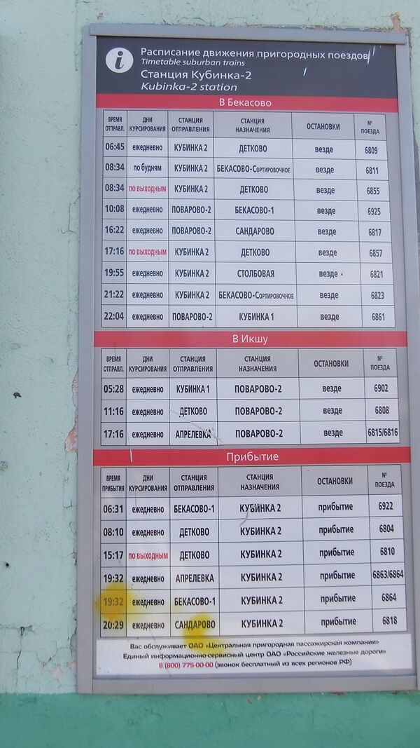 | Прилегающие перегоны | Лукино — Кубинка II (2), Кубинка II — Кубинка I (3), Кубинка II — Акулово (1) |