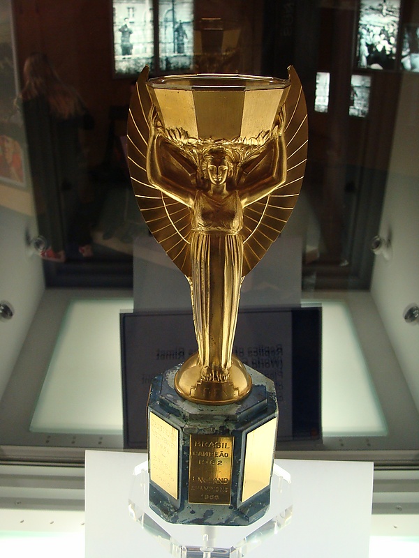 В 2015 году была найдена часть оригинального трофея Жюля Риме — основание из лазурита[14]. Бразильская конфедерация заказала для себя новую копию, изготовленную компанией Eastman Kodak с использованием 1,8 кг золота. Эта копия впервые была представлена президентом Бразилии Жуаном Фигейреду в 1984 году[13].