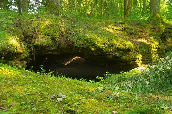 Условия для развития карста установились в этом регионе в конце силура — начале девона[16]. Здесь есть различные карстовые формы: провалы, воронки, ложбины, каналы, пещеры, последние — самые большие в Эстонии. Одной из самых красивых является пещера длиной 12 метров и шириной 8 метров в форме ракушки. Во время половодья здесь можно видеть, как по многим трещинам и каналам течёт вода, и даже услышать журчание воды из-под земли, при низкой воде водных потоков здесь практически не бывает. На западной стороне дороги меньше карстовых форм, но есть одна большая и интересная, однако труднодоступная пещера[14][17].