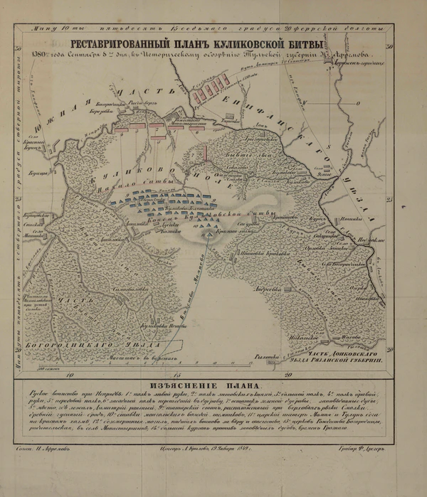 Из летописных источников известно, что битва происходила «на Дону усть Непрядвы».