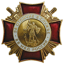 - Нагрудный знак ВВ МВД России «За отличие в службе»;