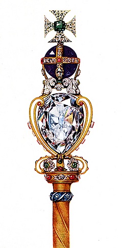 - «Куллинан-I», или «Большая звезда Африки» — 530,2 карата. Прозрачный, бесцветный. Имеет 74 грани. Каплевидной формы (панделок). Украшает скипетр английского короля Эдуарда VII. Был самым крупным огранённым алмазом в мире до 1990 года, когда жёлто-коричневый бриллиант весом 547,67 карата, получивший в 1995 году название «Золотой юбилей»[7], превзошёл его. Хранится в Тауэре, Лондон. Если «Куллинан I» вынуть из скипетра, то его можно носить как брошь.