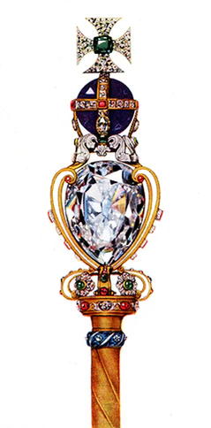 - «Куллинан IX» — бриллиант грушевидной формы (4,4 карата), вставлен в кольцо[8].