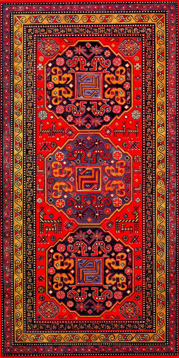 Популярны были и ковры татской работы, изготавливаемые различных типов: ворсовые — халы, халиче, гебе и безворсовые — палас, сумах, килим и др. Центрами татского ковроделия являются сёла Кубинского района (Дара-Чичи, Шудуг, Рустов, Кильвар и др.) и селения в районе Апшеронского полуострова[36].