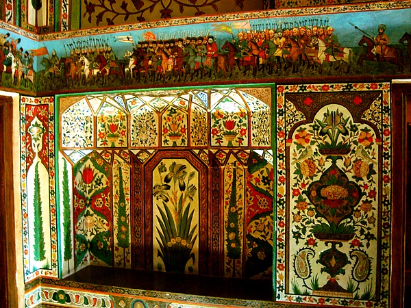 С XVII по XIX вв. многие азербайджанские художники, пользуясь масляными красками, принимали участие в росписях жилых домов, дворцов, бань. При этом рисовали не только декоративные мотивы, но и исторические — портреты, сцены охоты и сражений. В качестве примера можно привести росписи ханского дворца в Шеки, выполненные Гамбаром, дворцы Хусейн-Кули-хана в Баку, выполненные Наввабом росписи комнат Дворца сердаров в Эривани[27].