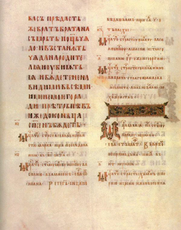 На Руси письменность существовала ещё до принятия христианства. Первая славянская азбука (глаголица) была разработана Кириллом и Мефодием во второй половине IX века, а затем ими же преобразована в кириллицу с включением греческих знаков — системой, которой (с незначительными изменениями) пользуются до сих пор. Так, текст договора Олега с Византией (911 год) составлялся как на греческом, так и на древнерусском языках[1].