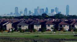 Абсолютное большинство американцев ныне проживают в пригородах — в так. наз. сабурбии (англ. suburbia)[4]. Тенденция стала наиболее явной с 50-х гг. XX века и была вызвана развитием автомобильного транспорта, дорог и телефонной связи. Сыграли роль и щедрые денежные пособия, которые американское правительство выдавало вернувшимся с фронтов Второй мировой солдатам[4].