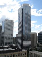 В первой половине века сооружались постройки с гладкими поверхностями из стекла и бетона, в ультралаконичных, нарочито геометризованных формах. Архитектура развивалась в плане предельной простоты и конструктивности. Особенностями градостроительства оставались разномасштабность, полное несоответствие в облике и размерах рядом стоящих зданий, отсутствие какого бы то ни было «ансамбля» и архитектурного комплекса. Хотя, нужно отметить, отдельные небоскребы часто были интересны по архитектуре.