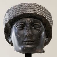 Самым замечательным из скульптурных произведений периодов Урук и Джемдет-Наср является найденная в Уруке мраморная женская голова (Багдад, Иракский музей). Плоско срезанная сзади, она была прикреплена когда-то к стене храма, являясь частью горельефной фигуры. Лицо богини с огромными широко раскрытыми глазами и сросшимися над переносицей бровями (глаза и брови инкрустированы) отличается большой выразительностью. Общая пластическая трактовка крупными объёмами, чёткая и уверенная, создаёт ощущение подлинной монументальности. На голове когда-то был прикреплен убор из золота.