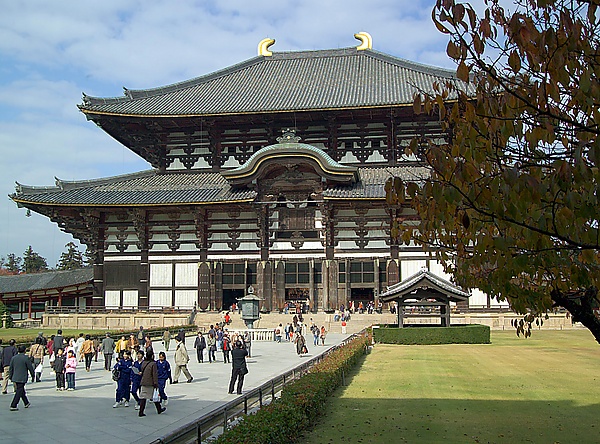 Позже, из Индии через Корею и Китай, в страну проникает буддизм, 552 год считается официальной датой признания новой религии.[9] Буддизм оказал большое влияние на образование, литературу и искусство Японии, хотя сам значительно трансформировался и сильно отличается от индийского и китайского буддизма.[10] При императоре Сёму (правил в 724—749) буддизм был признан государственной религией.