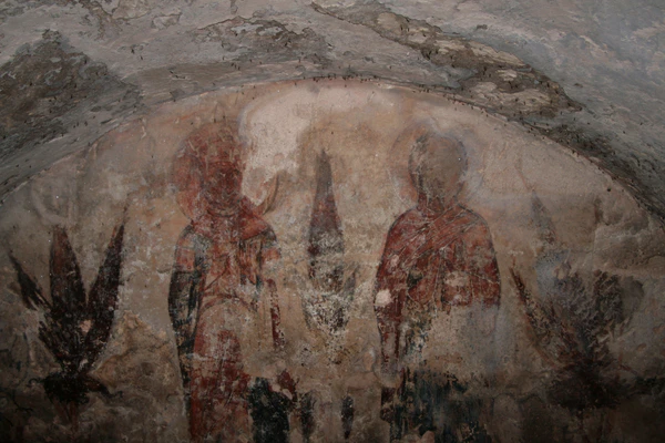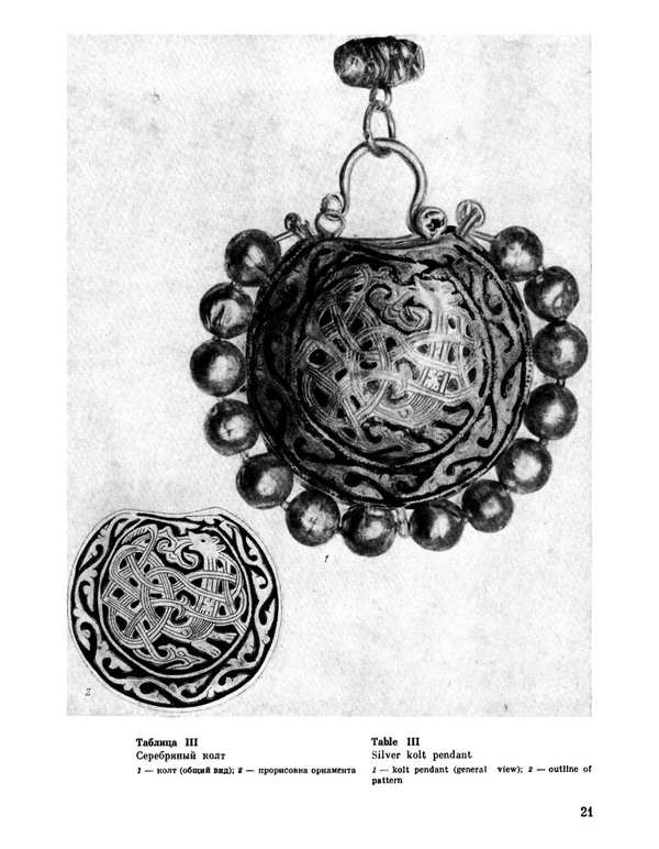 Наиболее распространённым типом подвесок были нательные кресты[9]. Начало распространения христианства на Руси документируется распространением христианских древностей (кресты-привески, свечи и др.), в основном в дружинных погребальных комплексах. Они фиксируются уже с середины — третьей четверти Х века (до официального крещения Руси в 988 году) в сети узловых пунктов Древнерусского государства — в городах и на погостах. Известны монеты (византийские с христианскими изображениями и восточные, саманидские дирхемы) с нанесёнными на них (на Руси) граффити, передающими крест и молот Тора. Такие византийские монеты носились как иконы. Кроме того, кресты вырезались из дирхемов. Граффити в виде крестов и молоточков Тора могли изображаться на бытовых предметах. Для начальной стадии христианизации (середина — вторая половина Х века) характерны крестовидные подвески из листового серебра, включая вырезанные из дирхемов. Они обнаружены в Гнёздове, Киеве, Тимерёве, на территории Искоростеня, в некрополе Пскова. Потоки монет на международных путях контролировала и распределяла княжеская дружина, религия которой становилась синкретичной. Эту дохристианскую эпоху, в отличие от более поздней, и можно считать периодом «двоеверия».