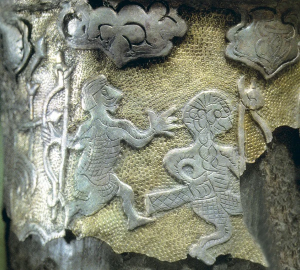 Ювелирные изделия украшались перегородчатой эмалью. Мастера использовали яркие краски, умело подбирали цвета. В рисунках прослеживались мифологические языческие сюжеты и образы, которые особенно часто использовались в прикладном искусстве. Их можно увидеть на резной деревянной мебели, домашней утвари, расшитых золотом тканях, в резных костяных изделиях, известных в Западной Европе под названием «резьба тавров», «резьба русов».