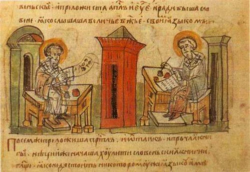 Создание славянской азбуки связывают с именами византийских монахов Кирилла и Мефодия. Кириллом во второй половине IX века был создан глаголический алфавит (глаголица), на котором были написаны первые переводы церковных книг для славянского населения Моравии и Паннонии. На рубеже IX—X веков на территории Первого Болгарского царства в результате синтеза издавна распространённого здесь греческого письма и тех элементов глаголицы, которые удачно передавали особенности славянских языков, возникла азбука, получившая позже название кириллица. В дальнейшем этот более лёгкий и удобный алфавит вытеснил глаголицу и стал единственным у южных и восточных славян.