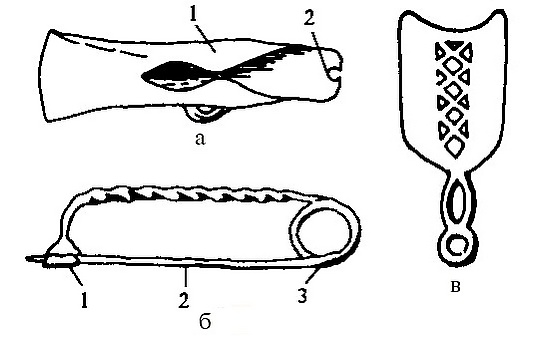 | Орудия | мечи, топоры с «крыльями» (иначе «закраинами»), смычковидные фибулы и обоюдоострые бритвы. | |||