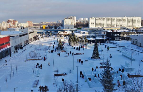 | Культурный центр «Чулпан» на фоне жилого комплекса «Олимп» и одноимённого отеля (декабрь 2020) | |