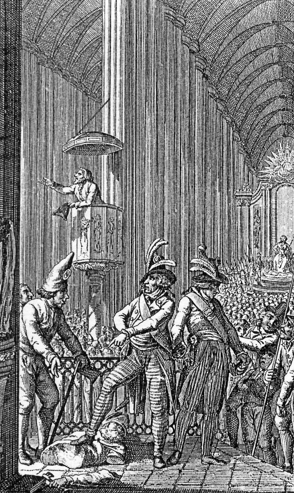 Однако не везде люди отказывались от религии, а священники — от сана. Во многих деревнях крестьяне выступали с требованиями открытия церквей и восстановления католической религии[2]. Максимилиан Робеспьер, будучи фактическим главой правительства, с 21 ноября 1793 года начал протестовать против действий дехристианизаторов. Он заявлял, что Конвент, принимая проявления гражданственных чувств, отнюдь не думал упразднять католический культ[2]. Он также решительно высказывался против атеизма как мировоззрения, по его мнению, аристократического и выступал за то, что «идея великого существа, блюдущего угнетенную невинность и карающего торжествующее преступление, является чисто народной идеей». 6—7 декабря 1793 года Конвент официально осудил меры насилия, «противоречащие свободе культов». В марте 1794 года культ Разума был запрещён, а Эбер и Шометт казнены (по суду Революционного трибунала эбертисты были гильотинированы 24 марта 1794 года, Шометт — 13 апреля 1794 года). 7 мая 1794 года Конвент своим декретом установил в качестве государственной «гражданской религии» Франции «культ Верховного Существа»[3]. Как культ Разума, так и культ Верховного существа были официально запрещены в 1802 году Наполеоном Бонапартом.