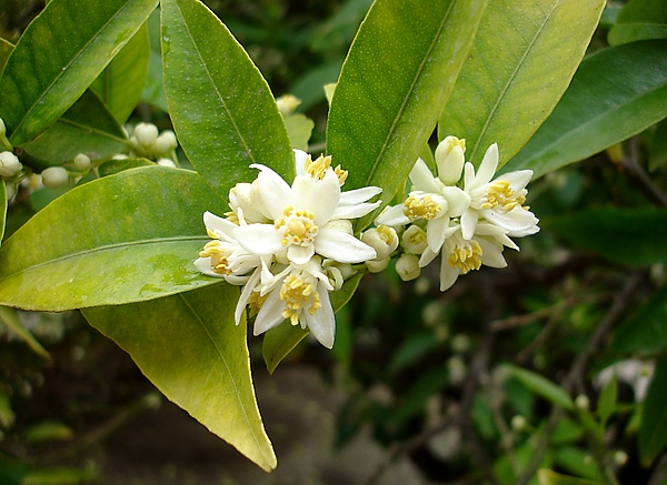 Цветки в числе одного-трёх, пазушные, белые, похожи на цветы других цитрусовых.