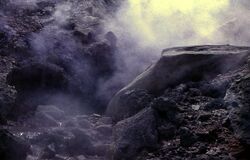 Геологическая история острова Кунашир тесно связана с вулканической деятельностью. Раскол земной коры и излияние магмы произошли на грани третичного и четвертичного периодов[29]. Здесь имеются четыре действующих вулкана: