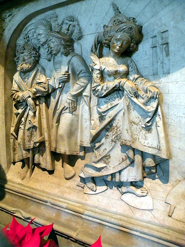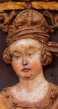 По преданию, обвинённая в супружеской неверности, она должна была встать босыми ногами на раскалённый лемех и осталась невредимой. Этот сюжет часто встречается в немецкой и раннефлорентийской живописи.