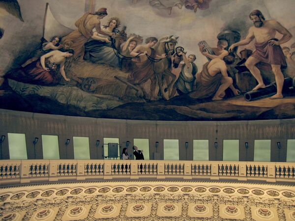 В 1822 году Булфинч запросил денежные средства на строительство центрального корпуса здания, и президент Монро подписал ассигнования в размере 120 000 $. Сюда входило здание с двойным куполом: каменным, кирпичным и деревянным внутренним куполом высотой 29 метров над ротондой (соответствующей размерам Пантеона), и деревянным куполом снаружи, покрытым медью, поднимающимся до 43 метров. В вершине купола был окулюс 7,3 метра в ширину, который обеспечивал освещение ротонды этажом ниже. Булфинч завершил проект в 1823 году[8].