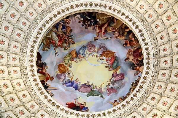В течение следующих 11 лет новый купол возвышался над столицей страны. К 2 декабря 1863 года Уолтер смог установить на куполе Статую Свободы (не путать с одноимённой статуей в Нью-Йорке). Для этого ему пришлось пересмотреть конструкцию купола, так как статуя оказалась сделана выше и тяжелее, чем требовалось[15]. Тем не менее, закончить работы над куполом Уолтеру не удалось, так как он подал в отставку в 1865 году. Его преемник, Эдвард Кларк, взял на себя завершение работ. Чуть более месяца спустя, в январе 1866 года, Константино Брумиди, который был нанят для росписи фрески на платформе над окулюсом внутреннего купола, снял леса, использовавшиеся во время его работы над «Апофеозом Вашингтона». Это ознаменовало окончание строительства купола Капитолия Соединённых Штатов[16].