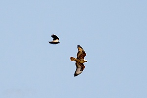 - ↑ Pfänder, P. & Schmigalew, S. (2001). [Extensive hybridization of Long-legged Buzzard Buteo rufinus and Upland Buzzard B. hemilasius]. Orn. Mitt.. 53: 344—349. (In German.).