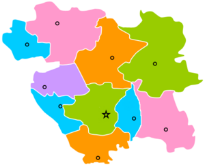 Другие крупные города — Секкез (135 тыс.), Мериван (95 тыс.), Бане (71 тыс.), Корве (67 тыс.), Камьяран (48 тыс.), Биджар (47 тыс.), Дивандарре (23 тыс.), Дехголан (21 тыс.).